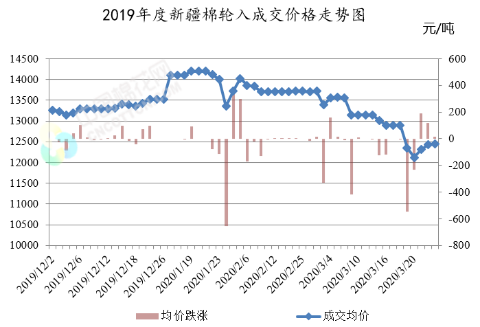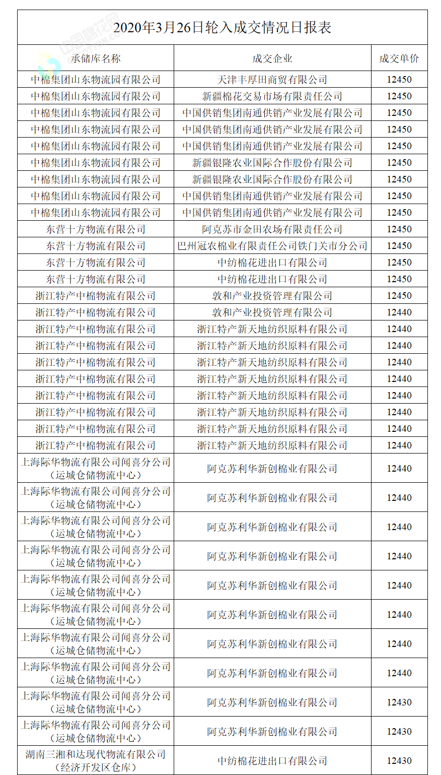 3月26日,中国储备棉管理有限公司挂牌采购新疆棉2万吨,成交均价12443元/吨,较上个交易日上涨14元/吨。